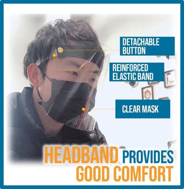 Full-Cover Anti-virrus Face Shield with HD optical view effectively prevents droplet infections via nose, mouth and eyes while ensuring a clear sight.