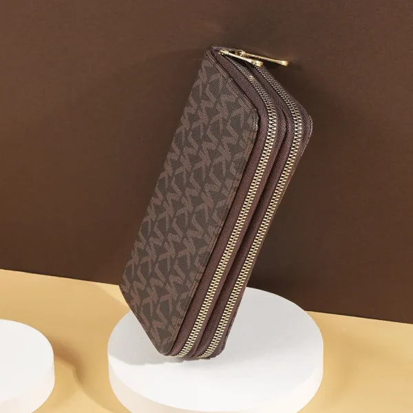 Carteras largas para mujer, bolsos de mano con doble cremallera, monedero con letra grande, cartera con correa de muñeca, soporte para teléfono, tarjetero, señora, moda - Coffee