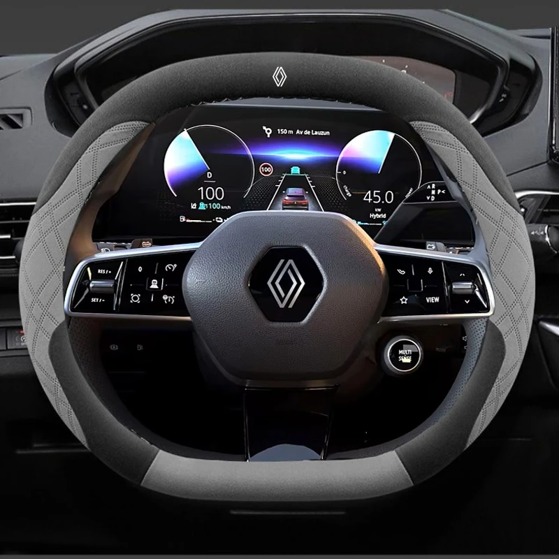 Suede Car Steering Wheel Cover for Renault Espace Austral Rafale Scenic Megane E-Tech 5 2024 2025 Auto Interior Accessories
